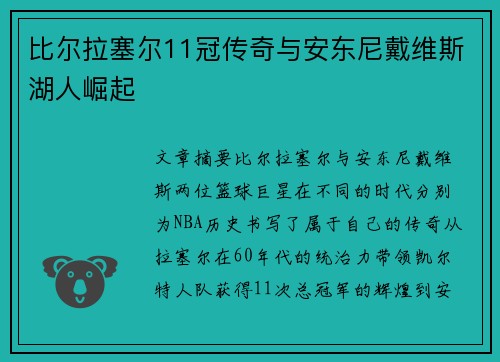 比尔拉塞尔11冠传奇与安东尼戴维斯湖人崛起