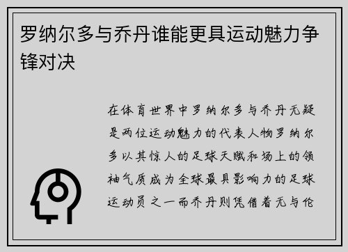 罗纳尔多与乔丹谁能更具运动魅力争锋对决